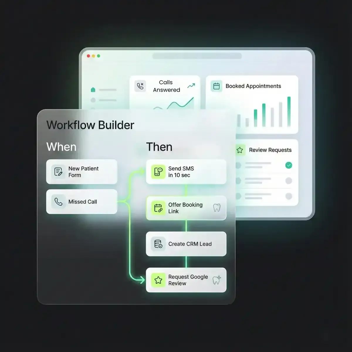 Instantly answers calls and website chat, captures patient info, and follows up automatically.